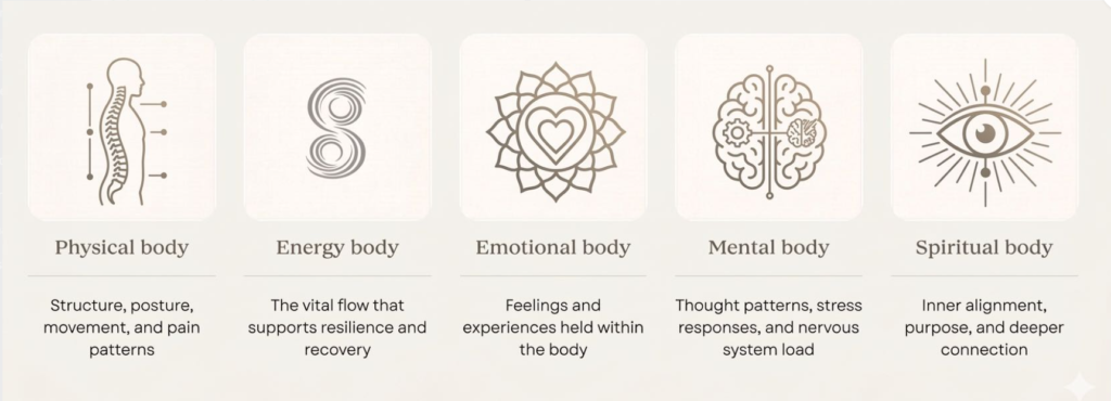 At Khi Tam, our work is designed to bring balance back across all five bodies, supporting the body’s natural ability to regulate and recover.